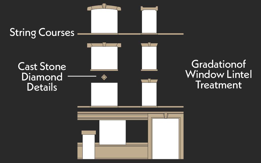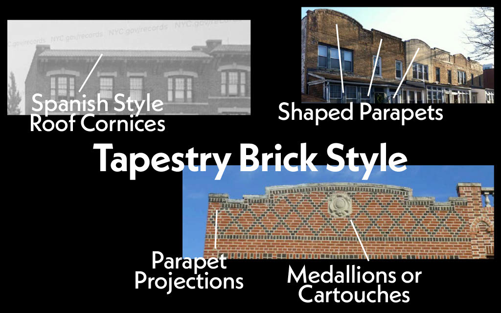 Based on architectural features, it was determined that these buildings might be classified as Tapestry Brick Style. This style, often used in 1910s and 1920s residential architecture, was prevalent throughout much of Brooklyn and Queens. Jonathan D. Taylor's thesis, Tapestry Brick Dwellings: The Emergence of a Residential Type in Brooklyn, served as a vital resource for understanding this under documented style.